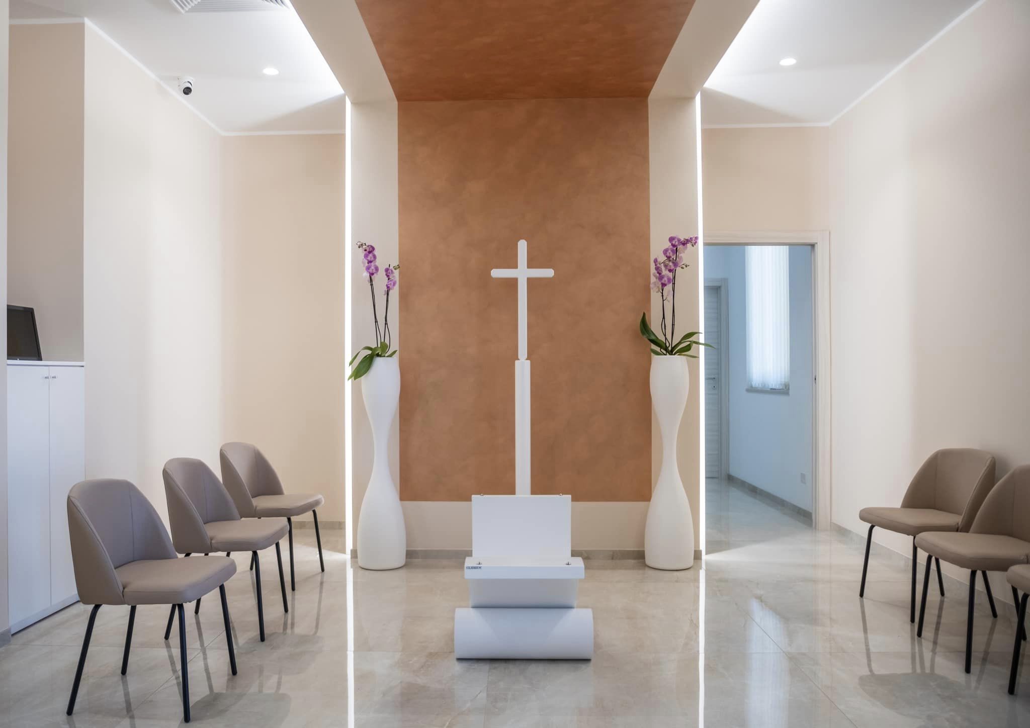 In un momento così delicato, desideriamo offrire alle famiglie un luogo accogliente e sereno, dove poter dare l’ultimo saluto ai propri cari in un’atmosfera intima e rispettosa. La nostra Casa Funeraria è pensata per essere uno spazio ampio e al contempo raccolto, dove ciascuno può trovare conforto e serenità, circondato dalla discrezione che questo momento richiede.